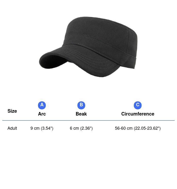 This 100% Cotton Flat Top Military Cap is made from premium cotton fabric, offering a soft, breathable, and durable wearing experience. It is suitable for everyday casual wear, outdoor activities, and street-style fashion.