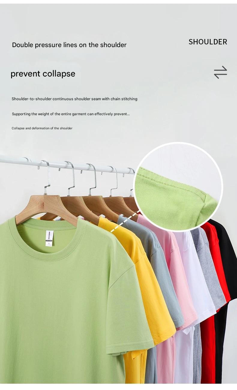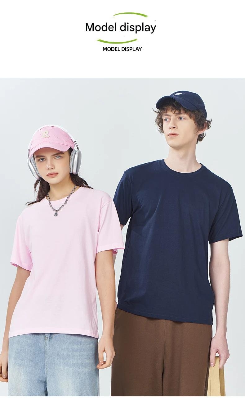 The classic crew neck short sleeve design provides a simple and versatile look suitable for various occasions such as casual wear, team uniforms, promotional events, and brand merchandise. The smooth cotton surface is perfect for custom logo applications including screen printing, embroidery, and heat transfer.