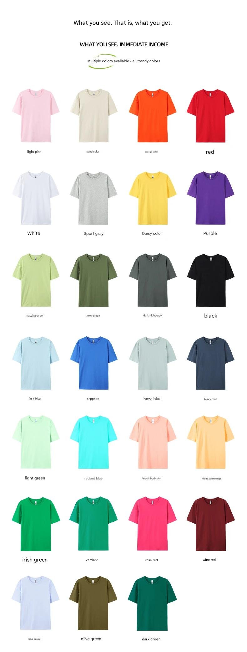 White, Black, Navy Blue, Sand, Royal Blue, Red, Sport Grey, Light Blue, Dark Night Grey, Light Pink, Orange, Military Green, Matcha Green, Daisy, Purple, Haze Blue, Peach Bud, Radiant Blue, Aqua Green, Sunrise Orange, Wine Red, Olive Green, Rose Red, Irish Green, Emerald Green, Lotus Purple, Dark Green