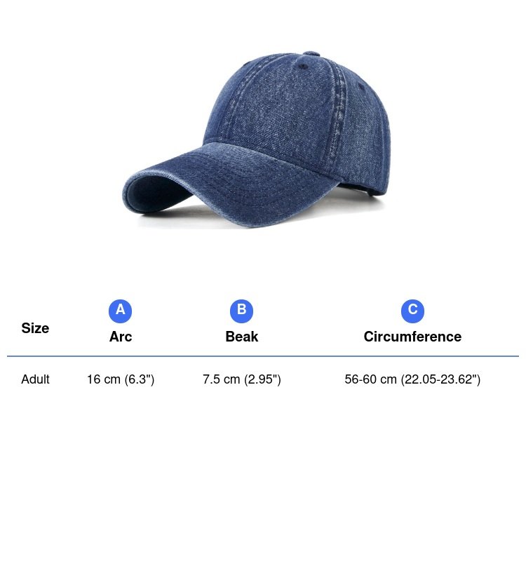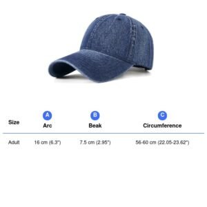 This Vintage Washed Denim Baseball Cap is made from high-quality washed cotton denim fabric, featuring a special washed process that creates a natural vintage look with unique color texture. The fabric is soft and comfortable, making it perfect for casual everyday wear.